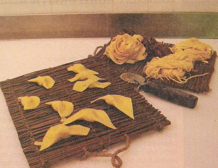 Esecuzione:in una terrina mescolate la ricotta,i germogli spezzettati,la scorza di limone e 30 gr di burro.Salare,pepare e mescolare. Con l’impasto ottenuto e la sfoglia tagliata a dischi,formare tanti grossi tortelli a forma di cappelli,lasciarli asciugare per qualche ora,cuocerli in acqua salata (meglio se nel brodo) scolarli,condirli con 50 gr di burro fuso e parmigiano.
